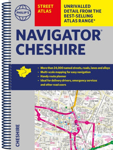 Philip's Navigator Street Atlas Cheshire(2022) PHILIP'S MAPSThe only detailed colour atlas that gives comprehensive coverage of the entire region - no other atlas names every street in Cheshire. The perfect back-up for emergency services, delivery drivers and locals.23,82 € Philip's Navigator Street Atlas Cheshire(2022) PHILIP'S MAPSThe only detailed colour atlas that gives comprehensive coverage of the entire region - no other atlas names every street in Cheshire. The perfect back-up for emergency services, delivery drivers and locals.23,82 €