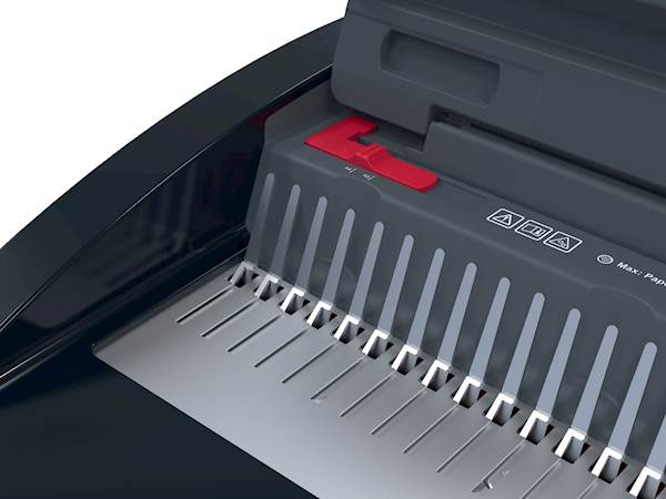 Vezalna naprava lahko poveže do 240 listov papirja z uporabo 28 mm spirale, kar pomeni, da lahko ustvarite debelejše dokumente z urejenim in profesionalnim zaključkom. S funkcijo nastavitve stranskih robov zagotovite natančno poravnavo strani, medtem ko priročni predal za odrezke in vgrajen predal za shranjevanje ohranjata delovni prostor čist in urejen.