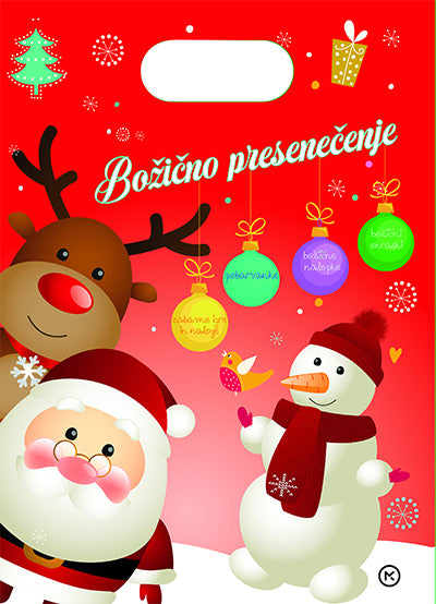 Prikupna vrečka, ki vsebuje dve knjižici: Mojo prvo pobarvanko in Zabavne igre in naloge, ki prinašata obilo nalepk in idej za ustvarjanje v prazničnem času.