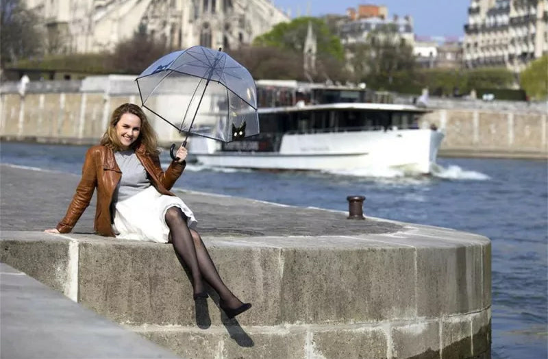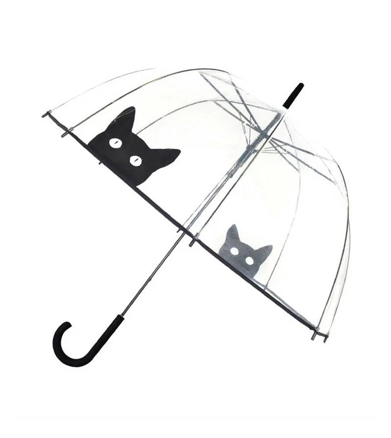 Dežnik, transparenten, z motivom črne muce.