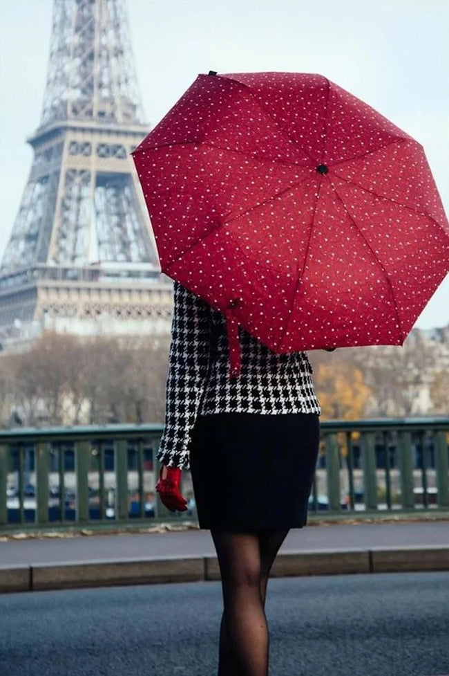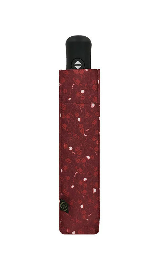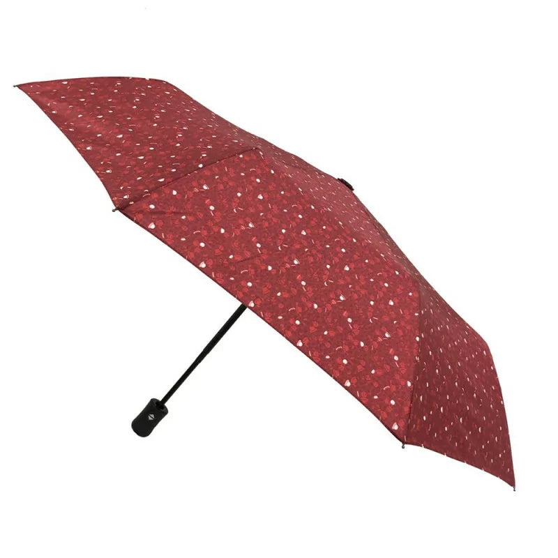 Zložljiv dežnik, v rdeči barvi z vzorcem.