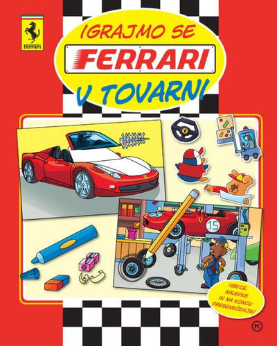 V tej knjigi aktivnosti najdeš zabavne igrice in barvne nalepke iz sveta legendarnih avtomobilov Ferrari.