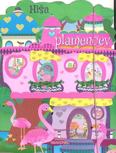 S čudovitimi nalepkami, posutimi z bleščicami, ustvari prizore v hiši plamencev in njeni okolici.