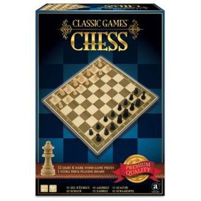Klasična igra šah. Velike lesene igralne figure in debela igralna plošča v lični in kakovostni darilni embalaži s pozlačenim napisom
