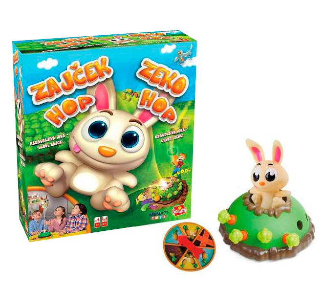 Razburljiva igra Zajček Hop, pri kateri poskusijo igralci zbrati čimveč korenčkov za zmago. Ampak, pozor! Zaradi enega od korenčkov bo zajček skočil v zrak. Boste ujeli zajčka in tako zmagali? Zabavna in vznemirljiva igra za otroke in družino.
