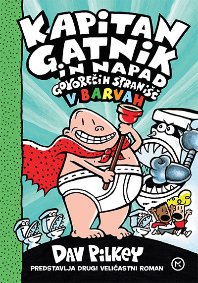 Drugi veličastni roman o kapitanu Gatniku – v barvah! Grega in Klemen sta ponavadi zelo odgovorna. Kadarkoli kdo kaj ušpiči, sta ponavadi odgovorna onadva! Njuna najnovejša potegavščina jima ne uspe po pričakovanjih in po nesreči izumita vojsko zlobnih govorečih stranišč.