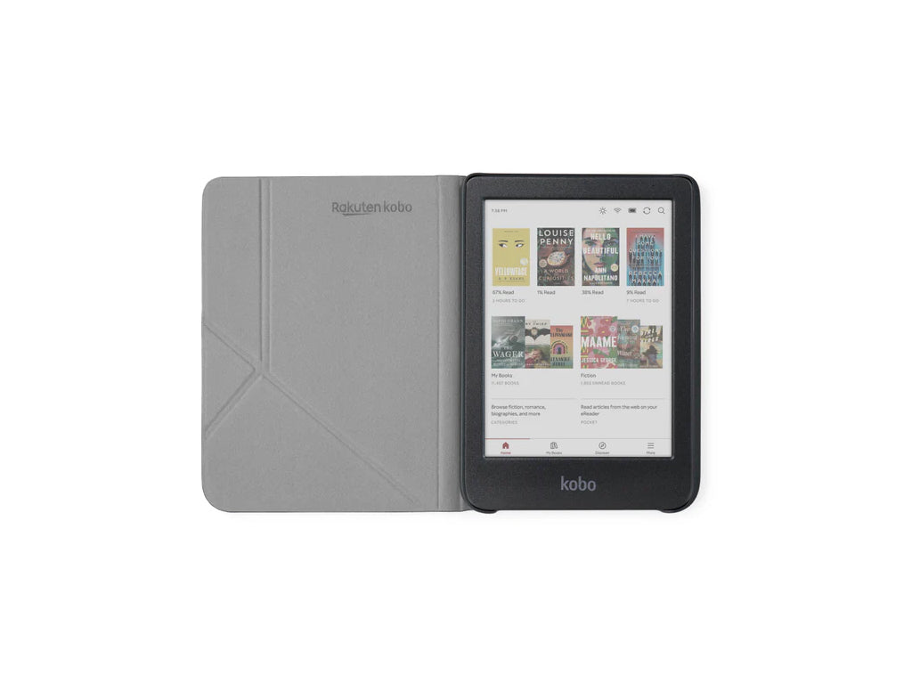 Ovitek za bralnik Kobo Clara Colour in BW v črni barvi. Ovitek je izdelan iz recikliranega poliestra in se popolnoma prilega bralniku. Omogoča neoviran dostop do vseh gumbov in vhodov bralnika. Podpira funkcijo samodejnega vklopa/izklopa ob odpiranju/zapiranju pokrova ovitka. Ovitek se lahko uporabi tudi kot stojalo za prostoročno branje.