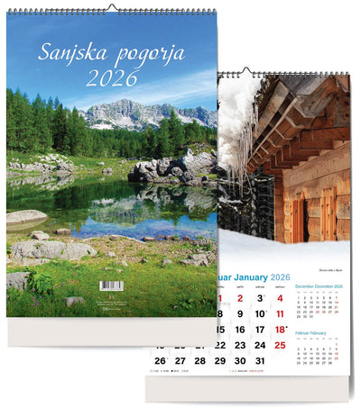 Spiralna vezava, označeni prazniki držav SLO, A, I, CRO, H, D, lunine mene, vložen v vrečko.