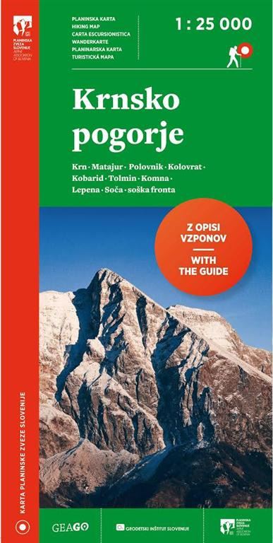 Planinski zemljevid Krnsko pogorje - 1 : 25 000 je nov zemljevid Planinske zveze Slovenije, ki obravnavano območje prikaže še natančnejše, predvsem pa preglednejše kot je bilo to predstavljeno v njegovem predhodniku (zemljevid Krn). Pri izdelavi zemljevida so sodelovali Geodetski inštitut Slovenije, Geodetska družba ter številni posamezniki, dobri poznavalci predstavljenega območja.Krnsko pogorje - 1 : 25 000 bo prišel prav vsem, ki bi želeli raziskati vrhove, doline in stene med Javorščkom, Lepeno in Kočo pri Trigalvskih jezerih na severu ter Matajurjem, Kolovratom in Tolminom na jugu. Vzhodni rob se prične tam, kjer se konča zemljevid Bohinj - 1 : 25 000, zahodni rob pa je omejen z Žago, Borjano ter Matajurjem.