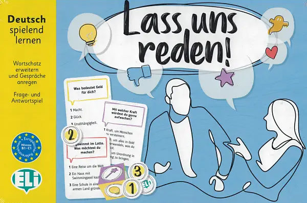 Lass uns reden! je interaktivna učna igra, ki spodbuja igralce k tekočemu in spontanemu pogovoru v nemščini. Vadijo tvorjenje stavkov, izražanje mnenj in odzivanje v različnih situacijah, s čimer izboljšujejo svojo komunikacijsko samozavest in besedišče.