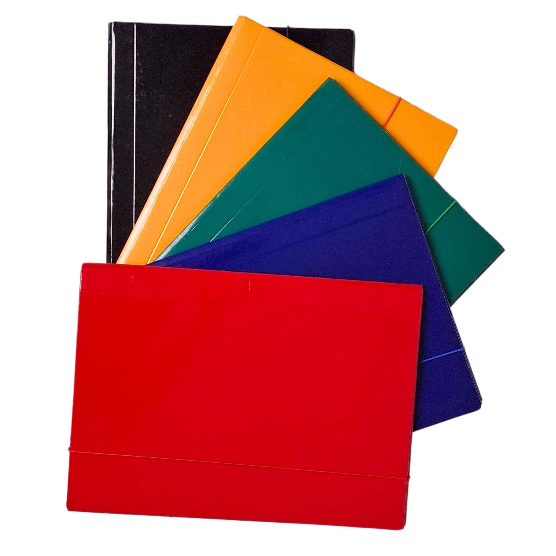 Kakovostna plastificirana mapa z elastiko, širina hrbta 10 mm, razširljiva na 30 mm. 24 map v pakiranju. Na voljo v različnih barvah.