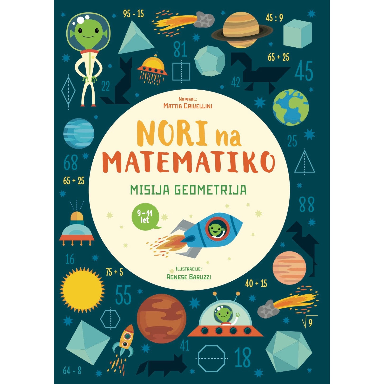 Urejenost, ravnovesje, simetrija, logika … lepoto matematike lahko prepoznamo vsepovsod okoli nas, tudi v vesolju. Pozorno opazovanje in spoznavanje geometrije na igriv in zabaven način je ključno za to, da otroci že zgodaj razvijejo veselje do matematike, ki jih bo spremljalo vse življenje. Zbirka knjig Nori na matematiko to omogoča z igrivimi dejavnostmi, ki so jih zasnovali strokovnjaki poučevanja z ustvarjalnim pristopom, ter jih obogatili s privlačnimi zgodbami, barvitimi ilustracijami in zabavnimi nalepkami. Otroci bodo tako usvojili osnovne geometrijske pojme z nasmehom na obrazu!