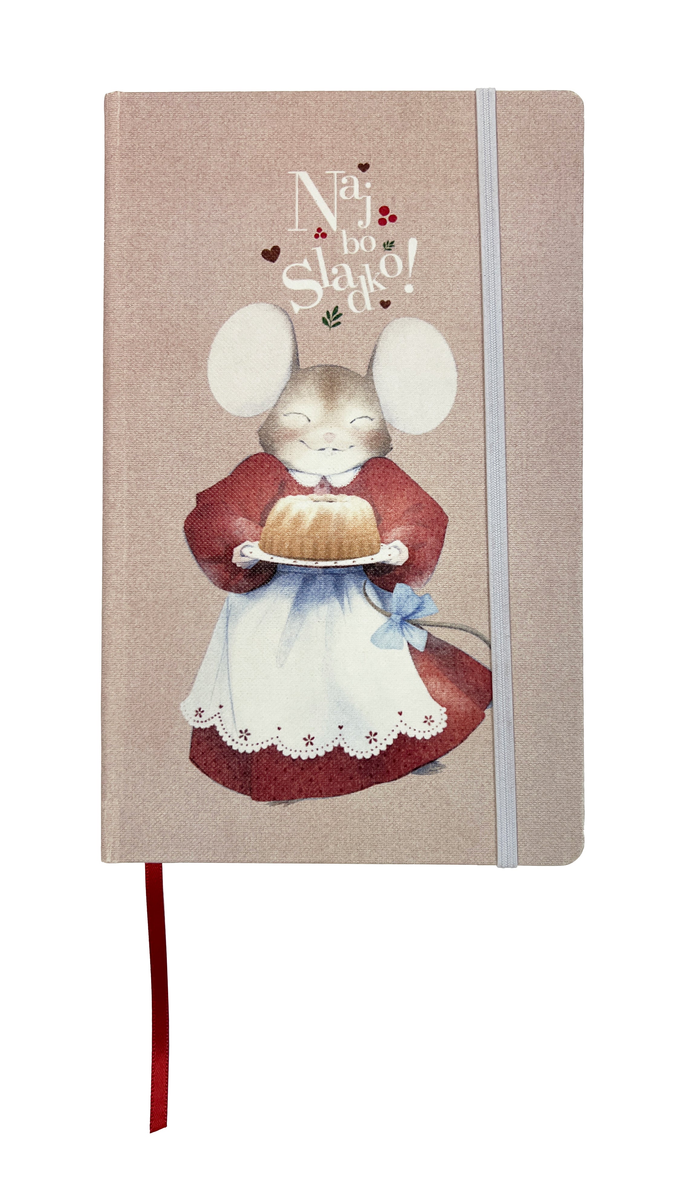 Velikost 13 x 21 cm, trda vezava, elastika, prva stran za zapis imena, 192 črtanih strani, na vsaki 8 strani barvna ilustracija v kotu. Zaobljeni vogali, označevalni trak.