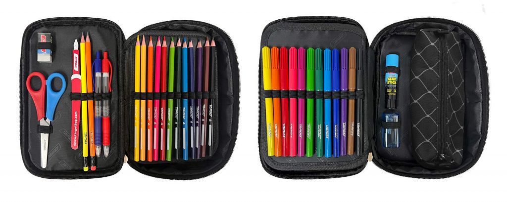 Peresnica vsebuje: 12 barvic, 12 flomastrov, 2 HB svinčnika, 3 kemične svinčnike (moder, črn, rdeč), šilček, lepilo v stiku 8g, radirka, škarje