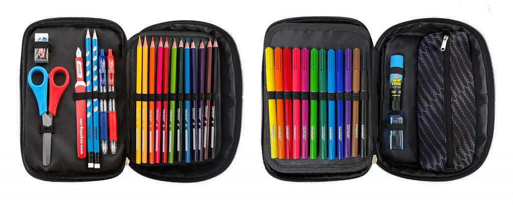 Peresnica vsebuje 12 barvic, 12 flomastrov, 2 HB svinčnika, 3 kemične svinčnike (moder, črn, rdeč), šilček, lepilo v stiku 8g, radirka, škarje