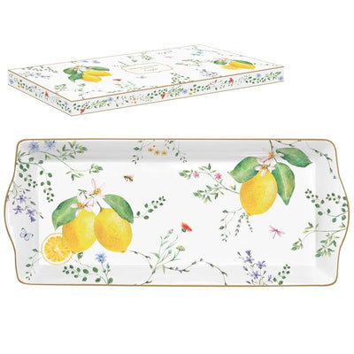 Pladenj iz porcelana z motivom limon. V darilni embalaži.