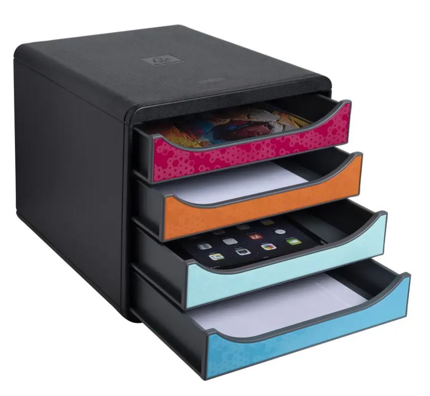 Ohišje predalnika je zasnovano v enem kosu, zato je bolj odporen, ultra tog in vzdržljiv. Zahvaljujoč 4 reliefom, ki zagotavljajo stabilnost, ga je mogoče zlagati en na drugega. Predali so prijetni za uporabo, drsni in tihi, opremljeni z varnostnim zaporo.