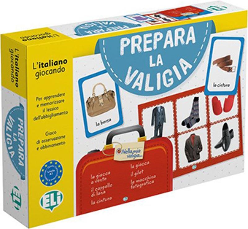 Prepara la valigia je zabavna in poučna igra, ki temelji na priljubljeni igri bingo ter igralcem pomaga izboljšati besedišče in tvorjenje stavkov v italijanščini. Igralci si morajo zapomniti in ponoviti vse predmete, ki so jih "spakirali" v kovček, pri tem pa širijo svoj besedni zaklad in krepijo spominske sposobnosti.