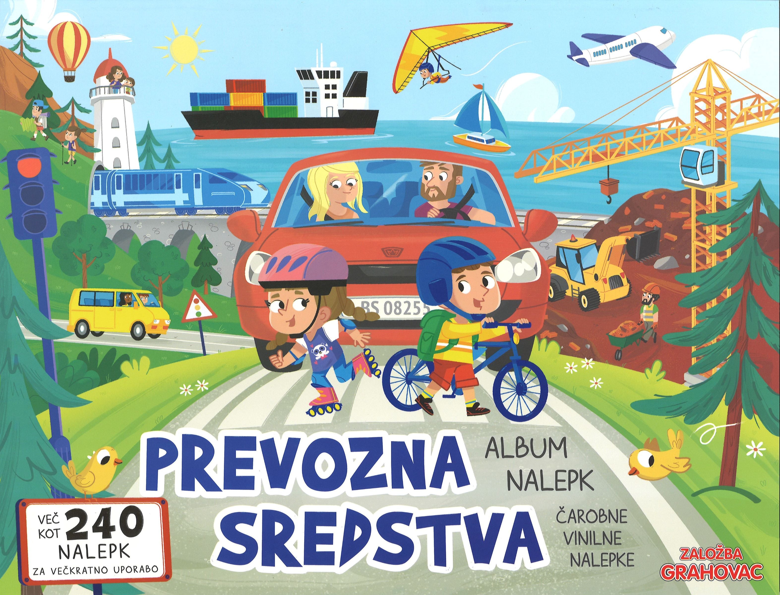 Album vsebuje 4 tematska, čudovito obarvana ozadja, na katerih lahko otroci ustvarjajo svoje zgodbe. Na voljo je več kot 240 nalepk za večkratno uporabo z motivi različnih prevoznih sredstev.S postavljanjem motivov se učijo o perspektivi in razdalji, razvijajo motorične spretnosti in krepijo ustvarjalnost.