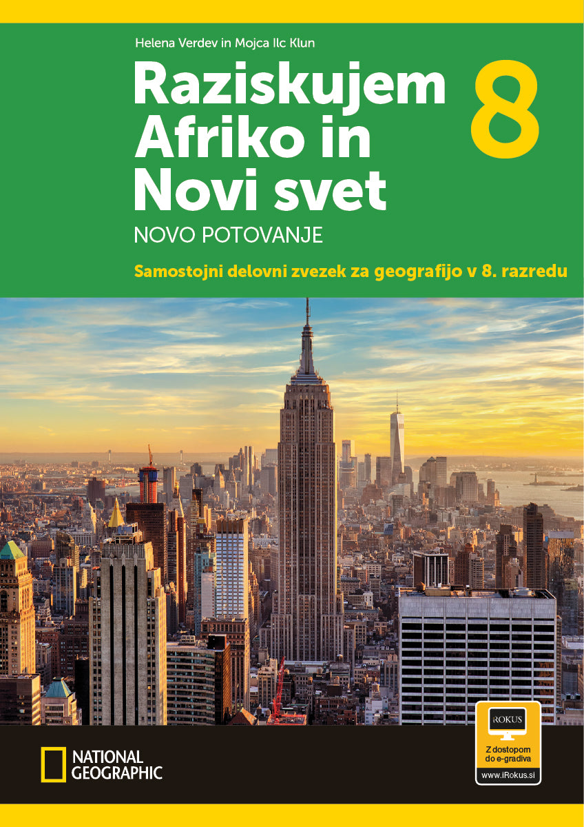 Samostojni delovni zvezek Raziskujem Afriko in Novi svet 8. Novo potovanje je poleg vsebinske nadgradnje obogaten tudi s popolnoma novim slikovnim gradivom ter z novimi rubrikami, ki so dodane za še privlačnejši in bolj razgiban pouk geografije s poudarjeno aktivno vlogo učenca.