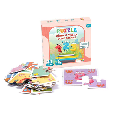 Učenje skozi igro in zabavo: MEHANO 4 Kids poučna otroška sestavljanka Učimo se števila vsebuje 40 kosov sestavljanke, iz katerih lahko vaš otrok sestavi 10 sestavljank z motivi števil od 0 do 9. S pomočjo sestavljanke se bo vaš otrok na zabaven način učiti števil, štetja, računanja, barv in oblik. V škatli sta poleg sestavljank priložena še tablica in plakat s števili oz. z motivi sestavljank, ki otroku pomagajo pri sestavljanju in učenju.