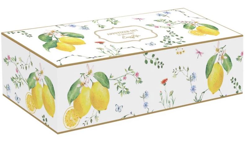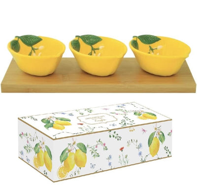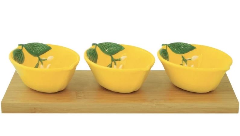 Set treh posodic na lesenem podstavku, Fleurs et Citrons