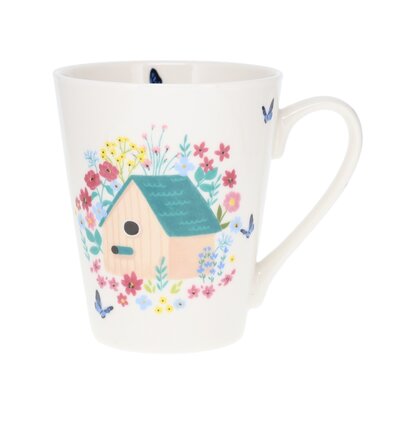 Skodelica s cvetličnim motivom.
