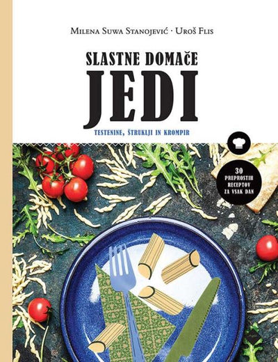 30 preprostih receptov za vsak dan:Široki rezanci z mini paradižiki, jajčevci, bučko in svežimi zelišči, fuži s tartufi, ravioli z nadevom iz rukole in skute, skutni štruklji, borovničevi štruklji, krompir z bohinjskim sirom, čompe … in še številne druge slastne domače dobrote za pester vsakdanji jedilnik.