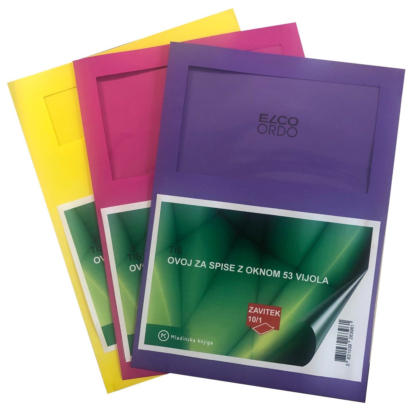 Barvni ovoji za spise z priročnim oknom na prvi strani. Narejeni iz 90 g barvnega papirja.