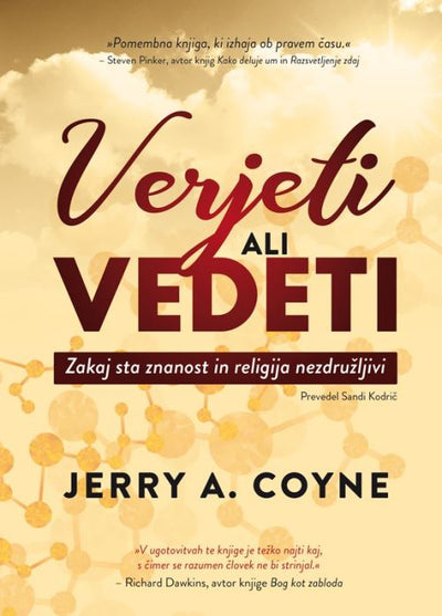 Verjeti ali vedeti je domišljeno in eruditsko izpisano humanistično delo ameriškega evolucijskega biologa Jerryja A. Coyna. V njem profesor ekologije in evolucije na Univerzi v Chicagu, avtor številnih znanstvenih člankov in treh knjig, večplastno primerja temeljne pristope različnih religij in znanosti k razlaganju stvarnosti. Z doumljivo in strokovno utemeljeno analizo v knjigi razvija svojo osnovno tezo in pojasnjuje, zakaj je povezovanje ali celo združevanje znanosti in religije obsojeno na neuspeh.