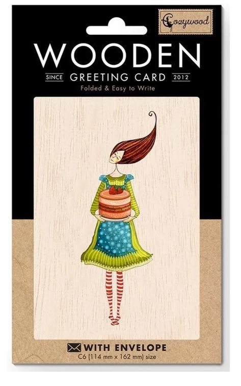 Velikost voščilnice je 108 x 154 mm. Voščilnica je pakirana skupaj s papirnato ovojnico velikosti 114 x 162 mm. Na leseno voščilnico lahko pišete sporočila z običajnimi pisali.