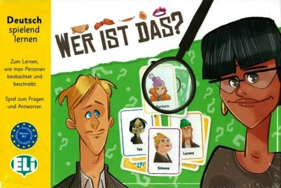Wer ist das? je interaktivna učna igra, ki igralcem pomaga izboljšati opisovanje oseb in prepoznavanje značilnosti v nemškem jeziku. S pomočjo vprašanj in namigov poskušajo ugotoviti, katera oseba se skriva za opisom, pri tem pa vadijo besedišče, tvorjenje stavkov in komunikacijske spretnosti.
