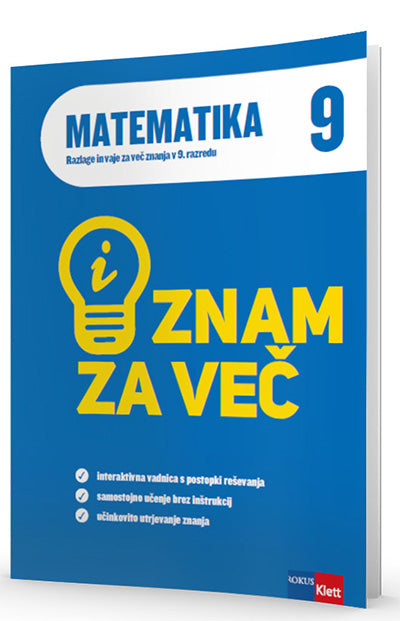 Številne in raznolike vaje različnih stopenj zahtevnosti omogočajo učinkovito utrjevanje pridobljenega znanja. Svoje znanje lahko preveriš s preizkusi znanja in rešitvami posameznih nalog.